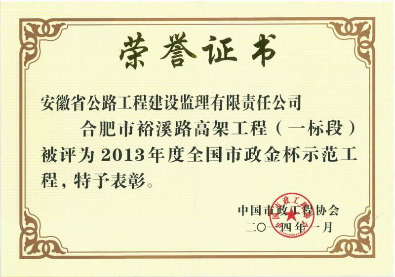 交通建設(shè)優(yōu)秀監(jiān)理企業(yè)
